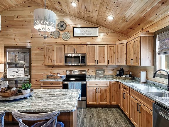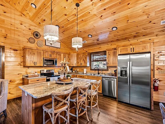 Prime Location! Stunning new build in the quiet community of Hideaway Ridge just a short 4 mile drive to the heart of Pigeon Forge! This property is completely turn key and professionally designed. It is currently being used as a short term rental, but would also make a beautiful vacation home. The owners self manage it on Airbnb and VRBO and have over $63K on the books so far this year and lots of great revenue months still left to fill. AirDNA projects $120k-$135K a year in revenue if managed properly. You will love this property! The main level has an open kitchen, living, and dining area which is nicely appointed such as the raw edge granite countertops and stainless steel appliances. There is a half bath off the kitchen as well for those sleeping on the sleeper sofa. You will also find access to the deck which has been nicely furnished for outdoor entertainment. Outside you will also find a large fire pit for S'mores night! To finish the main level there is a spacious king suite with a large bathroom and custom tiled shower! Heading downstairs there are two more king sized bedrooms and a large game room with two sets of twin over twin bunks, a sleeper sofa, and another full size bathroom. You'll also find a virtual pinball machine, a cocktail arcade system, and plenty of games to play! Outside the game room is the hot tub, an outdoor TV, a hammock, and more games! You don't come across properties this well designed very often so schedule a showing today or ask the sellers agent for a video tour!