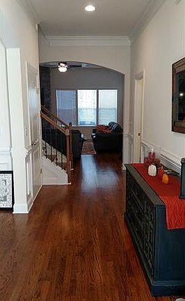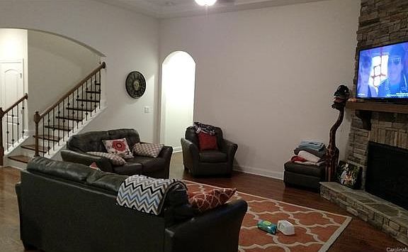 This beautiful Bonterra home has a full unfinished basement, master on the main level and rocking chair front porch. Open living area including beautiful stone fireplace, 10 ft coffered ceiling and nice archways. Wonderful kitchen with stainless range hood, gas range, large center island and breakfast area. Massive bonus room! Gorgeous hardwood floors, formal dining room and deck overlooks yard and woods. Beautiful Montibello plan! County Taxes Only and popular Harrisburg schools!