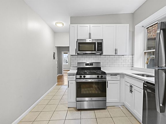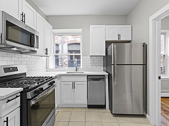 NO BROKER FEE! Move right into this fully renovated 3-bedroom/1-bath apartment, 3rd floor walkup, featuring a brand-new kitchen with quartz counters, ceramic plank tile flooring, plenty of cabinet space, and stainless-steel appliances, including a dishwasher. The inviting unit has refinished hardwood floors, abundant natural light, generously sized living room and primary bedroom, and a laundry room close by. Two other bedrooms offer additional work/life flexibility. Commuters will appreciate the buses to Journal Square right outside the building on Kennedy Blvd, as well as the 22nd st Light Rail for a short ride to Downtown JC (transfer to PATH to NYC) just 3 blocks away. ShopRite and CVS are close by as well, as is the wonderful 16th St city park and municipal pool. Coffee lovers will appreciate the proximity to Clutch Moto, a popular local cafe. But don't delay, at this price point and with these features, this beautiful apartment will not last! Book a private showing today. ONE PET allowed under 40 lbs for an additional rent of $50/m. Dog breed restrictions apply.