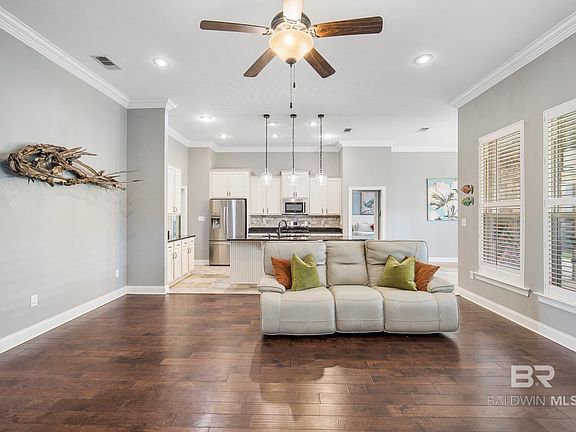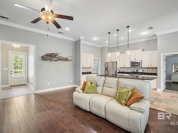 Fantastic home in a popular Fairhope neighborhood. Gold Fortified, built in 2018, this DSLD Homes CHARDIN II A offers a spacious 4/3 open & split design. The private primary suite has a garden tub, separate custom tile shower, double vanity and a walk through closet to the laundry for added convenience. 3CM slab granite counter tops w/ under-mount sinks in kitchen and baths, a mud room w/ boot bench, corner f/p, SS appliance package, upgraded ceramic tile in wet areas, recessed lights in kitchen/living room, Pfister bronze plumbing fixtures, radiant barrier roof decking, R-15 wall & R-38 attic insulation, brick and stucco exterior. Buyer to verify all information during due diligence.