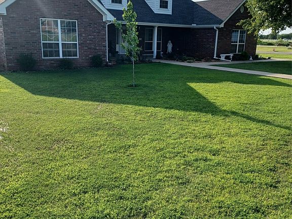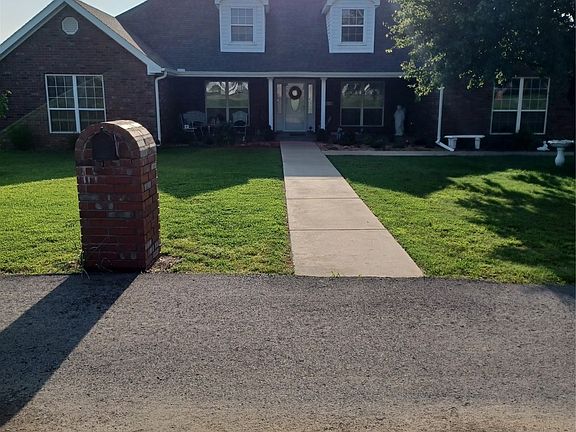 Beautiful spacious custom built Checotah home offering 3 bedrooms and 2 1/2 bathrooms. Enter home from big covered porch into foyer and family gathering room with beautiful vaulted ceilings with wood trim. Kitchen has beautiful granite countertops, spacious pantry, stainless appliances and big island with storage and seating. Dining area is in kitchen. Master bedroom is spacious with a large walk in closet and private ensuite with double vanities, walk in shower and whirlpool bathtub. French doors from living room lead to covered patio and large backyard. Detached shop offers more parking space, storage and hobby space. Corner lot. Landscaped with sidewalks and flowers. MUST SEE! Call for your private showing today!