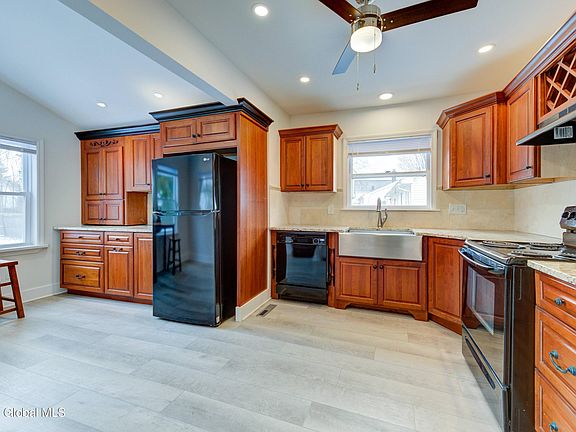 Discover this meticulously updated 3 bedroom, bath and a half bungalow that perfectly blends modern comfort with classic charm. The open floor plan invites natural light throughout the home, highlighting the eat-in gourmet kitchen equipped with a stainless steel farm sink, warming drawer, and wine rack. Enjoy the convenience of a pull-out garbage system and recessed lighting. This home features new carpet, central air, and a high-efficiency hot air furnace, ensuring year-round comfort. Additional upgrades include gutter helmets for easy maintenance. Detached garage with garage door opener and workshop with a large backyard