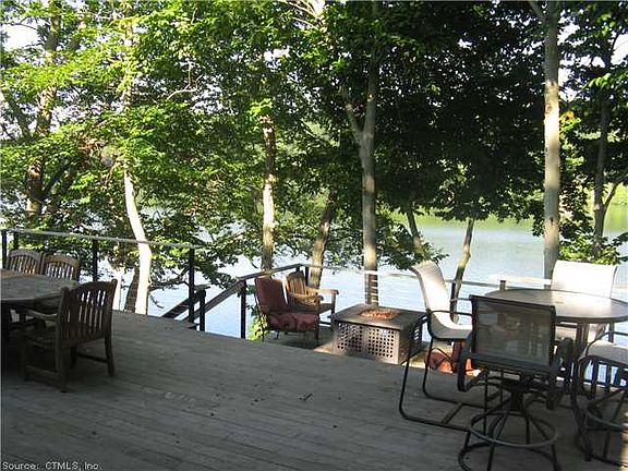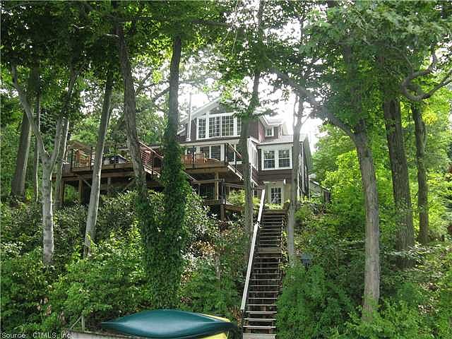 WATERFRONT 90' LAKE QUONNIPAUG! SWEET, HAPPY HOME WITH STUNNING 2nd FLOOR MASTER SUITE OVERLOOKING LAKE! NEW IPE DOCKS, STEPS & DECKS! WONDERFUL OUTDOOR LIVING "IN THE TREES"~NEW MBR,SEPTIC,PAINT,C-AIR,REF HW FLOORS,NEW TILED BATH~FABULOUS VIEWS & SUNSETS