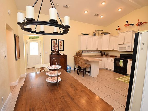 SUPER CUTE LAKE JUNE HOME. Very large, updated kitchen with breakfast bar and a dining area right next to it, cathedral ceiling and lots of recessed lights. This is a fun, week-end getaway home for the current owners with 2 bedrooms and a bonus room. Bathrooms have been updated too. Per owner, the siding is a Hardie cement board. Boat dock and boat house w/lift, sellers tore down and built boathouse all new when they had bought the house. The back is fenced and there's plenty of parking. Large shed, great for storing all the water toys. Per seller, AC replaced in 2015 and redecking, which was done in 2013 per permit, was new deck over the bulkhead/sea wall. Walking distance to Jaxson's restaurant. (Seller is willing to leave some furniture: the large couch, small game table, entertainment/tv stand, bunk beds and trundle bed)