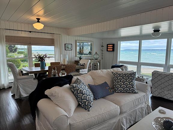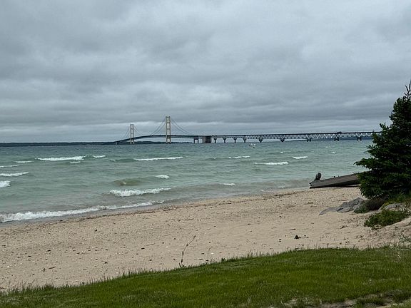 This the view of the Mackinac Bridge everyone wants! Totally renovated! New windows, siding, electrical, pumping, kitchen, bath, flooring, water heater, boiler/hot water heater system, gas fireplace, appliances. Views and Location are included with this cottage on Wawatam Beach in Mackinaw City. Imagine waking up to beautiful Lake Michigan with the Mackinac Bridge in the background. You will get all that and a cozy cottage, within walking distance to historical Mackinaw City. A fieldstone fireplace warms the large living area with two bedrooms and a full bath. Great opportunity. Call today!