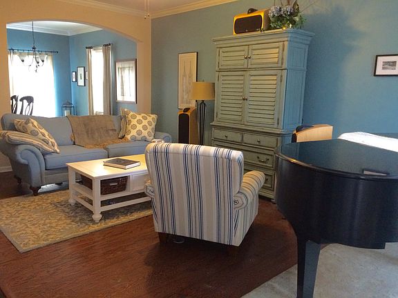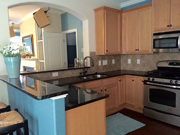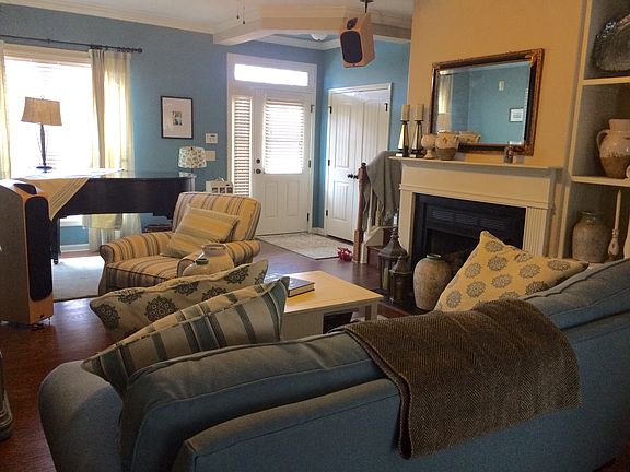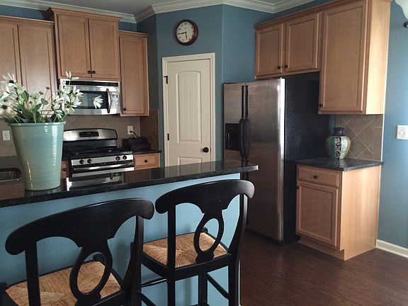 Hardwoods on 1st floor and stairwell.Upgraded carpet upstairs.Enjoy gas logs and surround sound wiring in living room.Kitchen offers stainless steel appliances including gas stove with granite counters, tile backsplash and bar for additional seating.Custom paint throughout! Spacious master suite offers tray ceiling, walk-in closet and master bath with garden tub/shower.Washer/Dryer and community pool/clubhouse Tenant responsible for utilities.