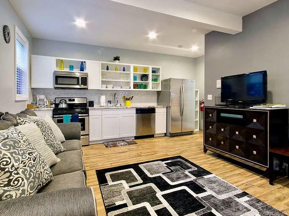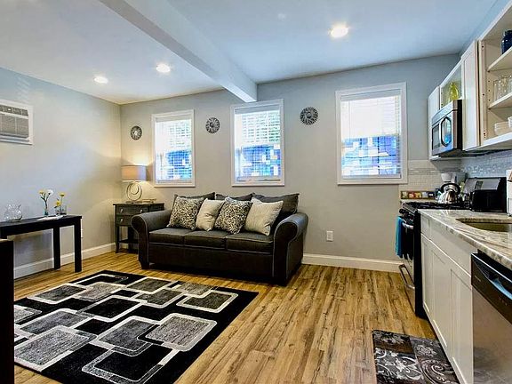 Charming 1 Bedroom, 1 Bathroom apartment with private entrance. Located in a gated property on a quiet street. This unit was recently renovated featuring stainless steel appliances, updated bathroom & kitchen, in-unit washer & dryer, and extra storage space in the back of the building, 15 minutes to NYC. Easy access to stores, restaurants and public transportation. We welcome you to come take a look for yourself! No Broker Fee. Water and gas included. Background check and credit check required. Well qualified applicants will have a minimum credit score of 700 and make 3x the rent on an annual basis. 1.5 month security deposit. Available Beginning of Sept!