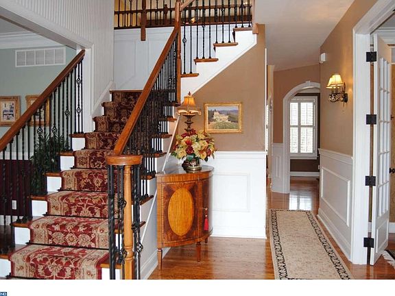 Many luxurious & technological conveniences, this custom, Sal Paone, Whitemarsh Chase home has 6683 sf. Over $500K in upgrades including: Belgian paver-lined, circular driveway with stone pillars & light posts - Lush landscaping including mature oaks & Japanese maples - Double wood, French entry doors with leaded glass - Double staircase with wrought iron railing - Extensive millwork including arched doorways with keystones, wainscoting, bead board detailing, plantation shutters, & 10" crown moldings - 9' to 2-story & vaulted ceilings; professional Custom paint, d~cor & closet organizers - Remote-controlled interior accent lighting, Mobile APP control outdoor lighting, heating, air-conditioning, security system - 3-car, carpeted garage with organizer system. First floor has hardwood floors throughout, a 2013 remodeled, gourmet kitchen with soft close doors & pull-out shelves, granite countertops, under-cabinet lighting, top of the line stainless appliances, a water line for a coffee maker, a large pantry, mud-room, laundry room, a bright breakfast room which opens to the multi-level deck & an office with private entrance. The two-story Great Room has a stone gas fireplace accented by palladium windows with plantation shutters. Second level - Master Suite with a tray ceiling, 10" crown moldings, remote controlled lighting, huge twin custom closets, a separate sitting room with a fireplace. Highlighting the Master Bathroom are unique tile & stone accents, a walk-in shower with 7 sprayer heads, radiant heated floors, Jacuzzi tub, double vanities & laundry chute. There are 3 additional spacious bedrooms with ample closet space, & two additional full baths. Third floor is finished as a 5th bedroom & could easily become an au pair suite or family room. Finished walk-out basement offers over 2000 sf with an additional full BR, new (2014) plush carpet, & bead board detailing leading to a paver patio & large, private back yard. The exterior offers a maintenance-free, multi-level deck with dedicated gas lines for the grill & fire pit; a hot tub; Bose indoor-outdoor remote sound system accessed by cell phone app; electronic pet fencing; & extensive landscaping including mature evergreens & oaks. The home is also designed with energy efficient features throughout including smart, remote-controlled heating, air conditioning & security system, double paned windows, instant hot water system; tinting on the first floor southern-facing windows, double oven, & more!
