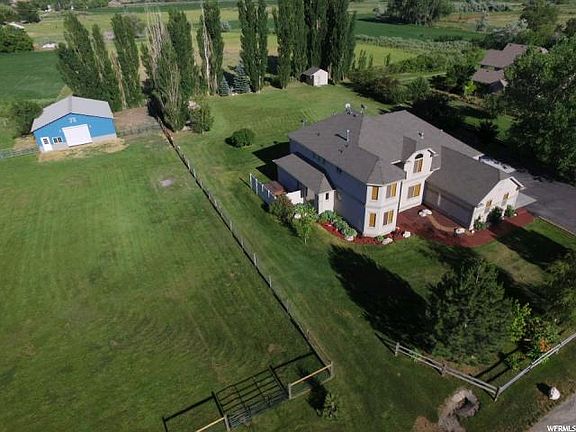 Wow, if you are looking for your own personal ranch/retreat with amazing views of the mountains and nothing but privacy, look no further! The home is on a sweeping 1.5 acres of horse property with no back yard neighbors, and there is plenty of room inside and out. In the house, you will love the large rooms, the vaulted ceilings, the huge windows that allow plenty of light, and all the of gorgeous upgrades throughout. In the kitchen, you will really appreciate the huge island, the large pantry, the Corian counter tops, the stone accents over the stove, the custom cabinets, and the beautiful tile floor. Turn around, and you'll love the gas fireplace with a huge 2-story stone hearth in the over-sized family room, which is great for entertaining, especially with a wet bar just off the family room. You will also really appreciate the log accents on the stone hearth, and the log railing that overlooks the family room. As you move into the master suite, you will be amazed by the size, and you will love the door to the exterior with the private Hot Tub pad/patio. In addition, the custom concrete work in the master bath gives a Tuscan feel and really makes you feel like you're in a fancy boutique hotel. As you move outside, you will love all the out buildings, including the extra-large 36'x36' barn with attached tack room, with 3 horse stalls made of tongue & groove pine, and with plenty of lighting throughout. The barn has water and electric run to it, and the property comes with 1.5 shares for irrigation which is plenty for watering the property and the horses. There is also a "man shack" out back as an extra retreat, equipped also with tongue & groove pine on the walls, as well as a wood stove, a covered deck, and a fire pit outside. In addition, there is a waterfall feature right near the "man shed" so you can enjoy the sound of running water from the covered deck. There is also a utility shed for extra storage. The home is also equipped with several other features that are great touches, such as a built in ironing board in the laundry, accent lighting in the master, extra outlets up on the fireplace hearth and above the pantry for plugging in decorations, as well as switched outlets under the eaves outside for Christmas Lights. It also has a built in safe that is lighted inside to store all your valuables. Outside, there are also two 50 amp power sub panels for RV parking, as well as gas lines for both patios for the BBQ grill. The home is well insulated, with R45 rating to help keep your utility bills in check, and there are two furnaces, two air conditioners, and two water heaters. There are also two laundry rooms, one on each level, and custom concrete counter tops and sinks in all the bathrooms. The home has all new paint, and new carpet throughout, so there is nothing left for you to do but move in and enjoy! If you like horses, amazing views, and wide open spaces, then this property is truly a gem you don't want to miss, so get out and see it soon before someone steals it out from under you! Square footage and acreage figures are provided as a courtesy estimate only and were obtained from County Records. Buyer is advised to obtain an independent measurement. Please see Agent Remarks for instructions before requesting showings or submitting offers.