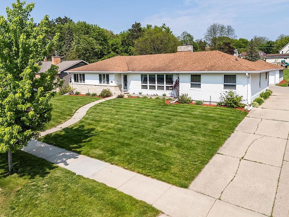 LOCATION! Perfectly situated across from Webb Park, this spacious updated ranch-style retreat with nature trails, pond, brand new playground and splashpad, pool, and disc golf right across from your home. Discover a cozy 15X28 living room boasting a picturesque window and a charming stone fireplace, ideal for relaxing evenings. The kitchen is a chef's delight, featuring ample counters, a pantry, and high-end stainless-steel appliances. Entertain with ease in the large dining area with patio access. Four airy bedrooms provide versatile living spaces. Solid oak floors and cabinets add timeless charm throughout. Additional highlights include main-level laundry, central vac, and abundant storage. An outdoor oasis with pergola, stamped concrete patio and lush landscaping awaits!
