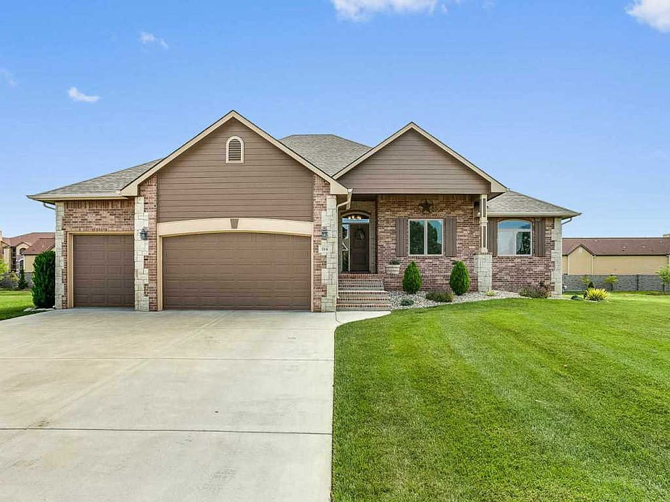 Where to start? Should we talk about the specials almost being paid off? What about INCREDIBLY low taxes, Wichita City, and Andover schools? What about the FIVE conforming bedrooms? Naw - lets start at the Front door - Custom landscaping with sprinklers on a well. Stepping into your formal atrium, you notice the intricate scraped hard wood flooring and epic tiling along with 10 foot ceilings. No need to hang out at the front door. Relax in your BEYOND GREAT room (can we call it the INCREDIBLE ROOM?) with solid surface counters in the kitchen, ample pantry, separate eating area and formal living area, you can call any spot YOURS. After absorbing all of the features in this INCREDIBLE area you are going to want to shut the custom blinds and head to your master "WING" (It is much more than a master suite). Huge bedroom with on suite that includes (again) solid surface counters, his and hers closets (hers is a walkin) and a shower that is ----- wow --- Just --- WOW! But don't stop there, check out the main floor laundry that is just a doorway away from the master suite. After your restful slumber -- check out the split bedroom plan. HUGE HUGE bedrooms and even an additional bedroom. When you are refreshed and ready to be wow-ed again, step into the lower level and enjoy --- ANOTHER kitchen (YES! it is more than a wetbar with a counter - it is a FULL size fridge, with space for so much more!) a dining area and another living area that is EVEN HUGER! And two more bedrooms that are large enough for the entire family. There is even a HUGE storage area and a "media center" --- WHEW -- grab a water and CHECK THIS OUT FOR YOURSELF!