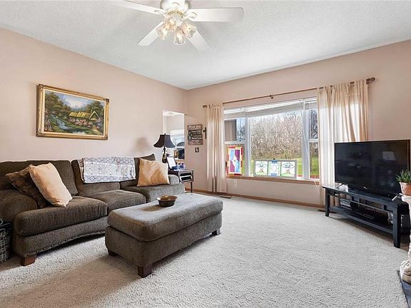 PEACEFUL, SERENE location on 3 acres, quiet cul-de-sac nestled at the end of a tree lined driveway. Convenient and plenty of space for indoor and outdoor living. Sip your morning coffee on the back deck with access from the kitchen or master bedroom! Customized floor plan, main floor laundry and master with oversized windows for plenty of daylight. Brand new carpet in the lower level walk-out, easy access to back acres. Newer HVAC and roof. Extremely well-maintained ONE OWNER home!
