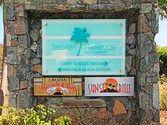 Beautifully located within Secret Harbour RESORT. This studio condo has been completely updated! Including quartz countertop, SS appliances including dishwasher. W/D steps from unit. Ocean view. Reverse Osmosis water filtration system, recessed lighting and under cabinet lighting, New A/C. Community parking lot. 150 steps to serene Secret Harbour Beach. Amenities include swimming pool and jacuzzi, gym, tennis courts, gated community with security. Secret Harbour is one of the best beaches in St Thomas, and has a restaurant (Sunset Grille) in the resort as well as public bathrooms, towels, chairs and umbrellas for owners. Charters available at dive shop.