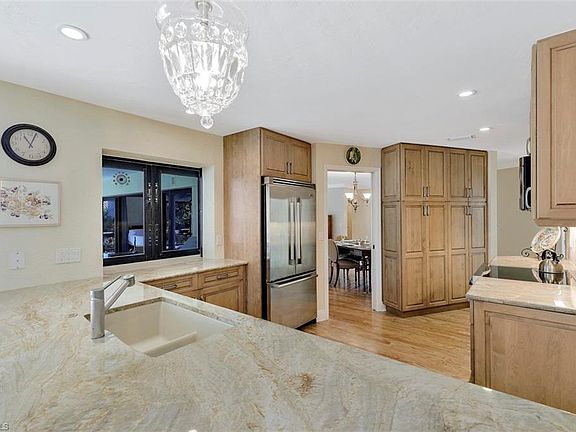 H. 15069 - Favorable FEMA appraisal received. Large budget for renovation, if desired. Sunny, southern exposure, cul de sac, pool home. This four bedroom three bathroom single story Park Shore home is located on a quiet street w/in walking distance to shops & restaurants. This home features a new (2019) flat tile roof and gutters, impact windows and doors, hardwood floors & an updated kitchen. The AC was replaced in 2017. The kitchen features wood cabinetry, granite countertops, high end stainless steel appliances & a walk in pantry. The master bedroom, living room and family room all have sliding door access to the outdoor living area, which has a pool, outdoor kitchen and a screened lanai (rescreened in late 2015). The back yard is unique and feels like you are in your own private park, with mature plantings and many fruit trees. Residents of Park Shore can join the voluntary homeowners association, which provides you private beach amenities, such as parking, bathrooms, showers and social events throughout the year for a minimal annual fee. Residents have the ability to purchase boat slips at Venetian Bay Yacht Club. Owners are in residence, do not walk the property.