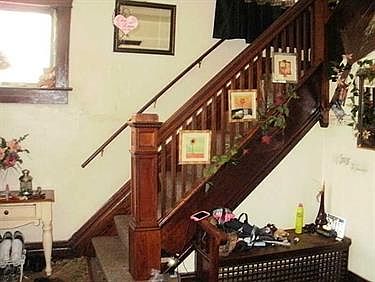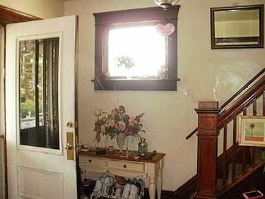 Lots of natural woodwork, including columns in entry, baseboards, pocket doors, built-ins, and stair rail. Kitchen features a butler's pantry with sink and wood cabinets. Dining room in use as 4th bedroom. Wooded hillside in back.