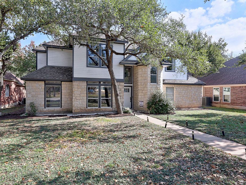 Step into this beautifully updated, move-in–ready contemporary home where natural light fills every corner and thoughtful design elevates everyday living. The stunning kitchen anchors the main level with its sleek high-gloss cabinetry, textured modern lower cabinets, quartz-style countertops, and striking horizontal tile backsplash. A farmhouse apron-front sink and a mix of stainless and modern high-gloss appliance finishes create a sophisticated look that feels both stylish and welcoming. The open layout flows effortlessly into multiple flexible living and dining spaces, giving you endless options for entertaining, working, or relaxing. Large windows create a bright, airy atmosphere throughout, while four spacious bedrooms and generous storage offer comfort and room to grow. Significant updates completed in 2023 add peace of mind and contemporary appeal, blending modern finishes with warm, inviting design. Set within a well-established Round Rock community known for its tree-lined streets, nearby parks, convenient access to shopping and dining, and close proximity to highly regarded local education options, this location adds everyday ease to your lifestyle. This home is a beautifully refreshed retreat—ready for you to move in and enjoy.