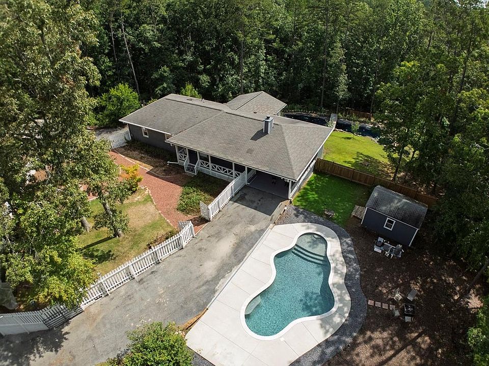 Your Dreams Can Come True! WOW! Come Experience this 5.05 Acre private gated estate nestled in the woods and out of view, creating the country "Get Away" lifestyle you have dreamed of! (lot 10 - 5.18 acres to the left sold separately for $ 165K OBO if you need more space to expand or build a second home). Move in Ready! Many NEW-NEW-NEW updates - Kitchen/Baths/Paints - so many things..... (See list) - Hot tub/Generac can stay! New water heater/HVAC system in 2017. Relax in your NEW HEATED SALTWATER GUNITE POOL, or sit and listen to the "NOISY" WATERFALLS on the 75'X35' - Koi pond in the backyard retreat! Bring your bikes or walk along the babbling creek at the back of the property & watch nature thrive. The apple, Peach, Fig trees, strawberries/blueberries & flowering gardens are delightful. Greenhouse too! Hobbyist will enjoy the 19'X20' DETACHED GARAGE/SHOP building too. There's lot of parking for ALL OF YOUR TOYS and easy access with circular driveways. NO HOA - Pursue your Passions! Finished Rec room/flex space on the terrace level with half bath (stubbed for another full bath) --The perfect place for your future media/theatre room. Many possibilities here-- inside and out! Motivated seller. Move In Ready! This is your PRIVATE OASIS in the heart of the Clayton Community of Ball Ground's gorgeous Estate homes! Come see and Fall in Love today!