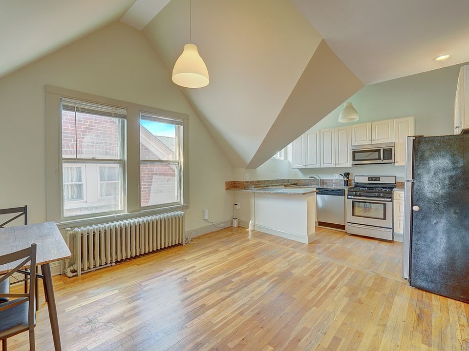 3rd Floor Gracious 1 Bedroom with Soaring Ceilings Near Yale SOM | Heat, Hot Water Included Features: - Beautifully updated eat-in kitchen with granite island/countertops - Stainless steel appliances including a dishwasher, gas range, and microwave - Hardwood floors throughout - Private bedroom - Spacious Living Room - Great natural light on the third floor - Prime East Rock Location - Super walkable neighborhood - Close to Yale School of Management - Coin-Op Laundry - Secured, Covered Bike Storage Utilities: - Heat, Hot Water, Cooking Gas Included - Cold Water & Sewer Included - Tenant pays electricity wifi & cable Security deposit equal to 1.5 one month's rent. 1st month's rent and security deposit due at lease signing. Owner pays heat, hot water, cooking gas, cold water, and sewer. Tenant pays electric and wifi.