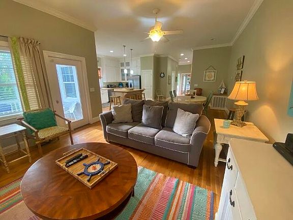 Won't Last! Best buy on fully furnished 5 bedrooms, 4 baths, 2364 sq. ft. duplex in gated coastal resort community. The custom townhome is only a five-minute walk or bike ride out the resort's owners' only gate with direct beach access. Home features an open floor plan with natural light, solid oak hardwood floors throughout, bathroom on main floor is tile, coastal decor, dual master bedrooms, stainless steel appliances, Butcher Block countertops, recessed lighting, a center island in kitchen area open to the living and dining areas, spacious entrance side sun deck, 2 guest bedrooms, conveniently located full bath, and a large screened in porch with access off the living room where you can enjoy sea breezes and listening to the song of the ocean waves.The main master bedroom suite on the second level has its own spacious private bath featuring dual vanities, tile flooring, glass enclosed shower, private covered balcony where you can enjoy the coastal breezes with your morning coffee or evening libations. There are 2 additional bedrooms with access to shared deck private baths to give your guests the space they need to relax and enjoy morning coffee or evening libations, and both have private baths. Ground level under home offers areas for entertaining, cookouts and parking and a dry entry to the home. In addition to a storage room to accommodate all your bikes, golf cart, and beach toys, there is also a large enclosed hot and cold outdoor shower perfect for freshening up after a fun day on the water. HVAC unit for main level of home was replaced earlier this month. Great rental, secondary or primary home! Come see it for yourself today!