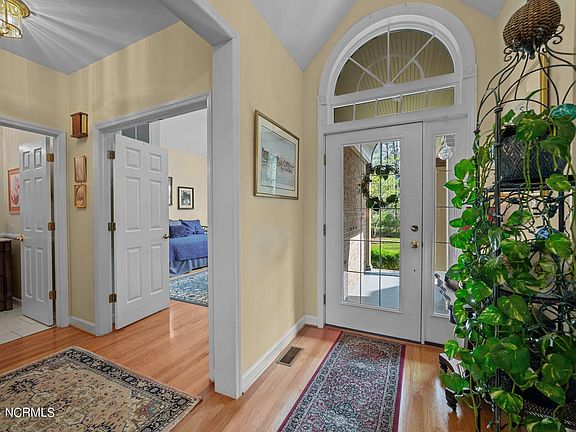 Nestled among the pines in the popular boating community of Pamlico Plantation, this 3 bedroom, 3 full bath custom built beauty is what you've been waiting for! Situated on a 1.03 acre wooded lot, this home features a gated entry, mature landscaping, inviting front porch, formal dining room for all of your holiday gatherings, Anderson windows & doors throughout, hardwood floors throughout the main living areas, and a large living room w/ soaring cathedral ceilings, tons of natural light, & a cozy fireplace w/ gas logs! The spacious kitchen offers custom cherry cabinets, recessed lights, built-in pantry storage, stainless steel appliances including a double oven, electric cooktop, dishwasher & French door refrigerator plus a breakfast nook w/ lots of windows overlooking your private backyard! There is a separate laundry room w/ a utility sink, storage cabinets & folding area plus a 2-car attached garage! The main level primary suite offers trey ceilings, double doors out to the screened-in porch, a HUGE walk-in closet w/ built-ins and an attached bath w/ double sinks, tile floors, jetted tub & a walk-in tiled shower! On the main level, you will also find an office w/ hardwood floors and a second full bath that could be used a main level guest suite! Upstairs, there are two guest bedrooms both with walk-in closets, a third full bath w/ tile floors, and a large bonus room w/ a skylight & walk-in finished storage areas! Enjoy your morning coffee or evening cocktail on your relaxing screened-in back porch! The back yard is truly an entertainers dream with a large deck for your summer BBQ's, outdoor shower, and a brand new hot tub! Wired workshop! This coastal community offers a gated entry, marina with assigned deep water boat slip, a pool overlooking Broad Creek & the Pamlico River, boat ramp, playground, nature trail, tennis & pickleball courts, RV/boat storage lot and many social events! Desirable Bath School District! Join the lifestyle today for just $549,000!