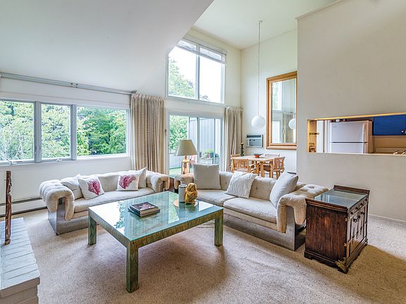 Enjoy the convenience of co-op living in this beautiful light-filled two bedroom, two bath home located between East Hampton and Amagansett. This unit is by far the best location of all units with sweeping views of the mature landscaping, privacy from the pool and tucked as far south as possible in the Hampton Mews community. 1,552+/- sq. ft. upstairs unit features pristine, bright interiors with high vaulted ceilings and delightful summer breezes. The living spaces flow smoothly between the living room with fireplace, formal dining room and an eat-in kitchen. A loft provides additional space that could easily be a third bedroom or an office space, and your private 445+/- sq. ft. terrace affords views across the landscaped grounds. Additional amenities include the heated community pool and proximity to ocean beaches and the restaurants, shops and other attractions of Amagansett and East Hampton Village. The most affordable hidden gem in the Hamptons.