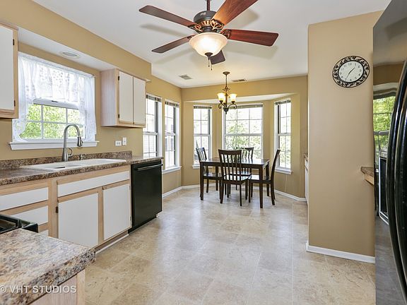 So much to fall in love with here!! Quiet 2nd floor unit with a private entry, nestled back in a cul-de-sac. Home is freshly painted & lovingly maintained. 3 bedrooms & 2 full baths, 1528 sq ft of living space. Home features a sunny kitchen with a bay dining area! Huge family room w/ cozy fire place and private deck access. Master bdrm suite features vaulted ceilings, his/her closets, private bath w/ garden tub & separate shower! Convenient full size laundry in unit! Additional storage in 2 attics. Upgraded lighting package with dimmers, my Q Smart phone controlled garage opening system. Community amenities include walking paths, pool & clubhouse! Premium location close to 3 oaks beach/recreation, downtown, shopping/dining on Randall , and 5 min to train station! Pets ok/ no weight restriction. Attached one car garage with extra storage space. Plenty of parking on driveway & across from unit. Home warranty included! Call to schedule your tour today! This is a must see!!!