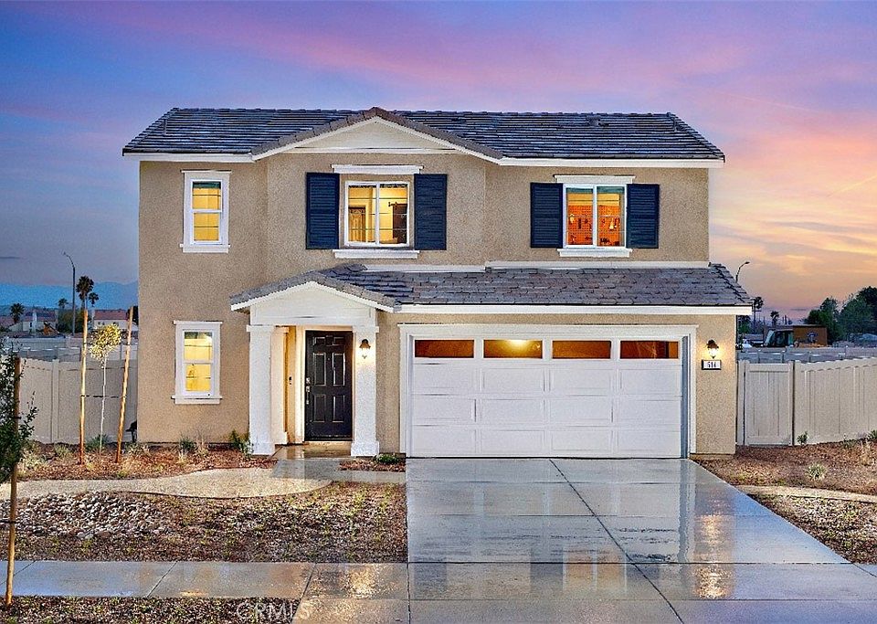 This beautiful Traditional exterior façade 2-story home has an open concept floorplan with Great Room, Dining area and island kitchen with breakfast bar and has a walk-in pantry, granite countertops, stainless-steel built-in appliances and a powder bathroom downstairs. Three bedrooms, 2.5 bathrooms with a LOFT and generous laundry room upstairs. The upstairs primary bedroom has an ensuite bath with a dual vanity, walk-in shower, separate commode room, and nice size walk-in closet. The home comes complete with crisp WHITE shaker-styled cabinetry and vinyl flooring. No Carpet!! You'll also find a direct access 2-car garage PRE-PLUMBED for an electric car! This truly modern home has all the SmartHome features you would expect and, is FULLY LANDSCAPED AND IRRIGATED in the front yard. Home is situated close to neighborhood parks, shopping, and freeway access.