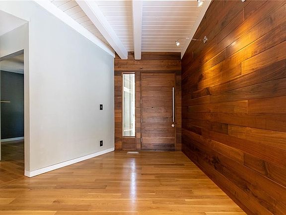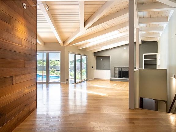 This Midcentury modern ranch home is nestled on a serene, tree-lined street that is over a half acre lot! Open living space bathed in natural light from skylights and complemented by a sleek, renovated kitchen featuring handcrafted Custom Wood Products cabinets, a Wolf gas cooktop and double ovens. Primary bathroom has been beautifully renovated with a luxurious walk-in closet. The fenced backyard features a pool and plenty of greenspace that offers a perfect blend of comfort and outdoor living.