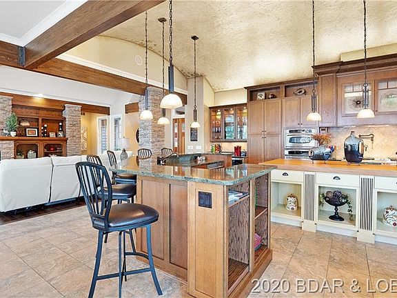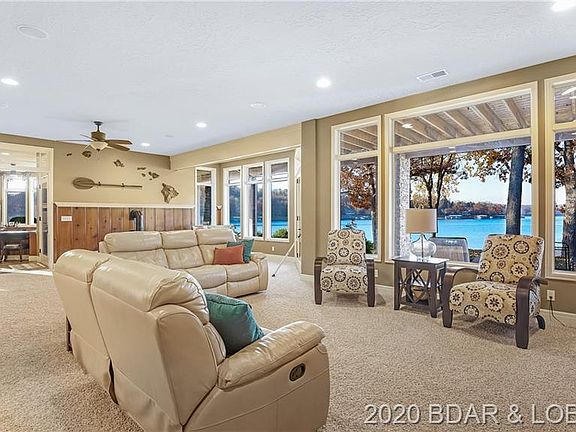 The perfect lake home awaits you at the in coveted Cartwright Cove! Custom built in '06 this home was featured in Lake Lifestyle magazine in 2012. Privacy & comfort in mind w/ 489 ft. of gentle shoreline, concrete driveway, awesome dock & amazing views. There is 2.2 acres on the water & 15.85 acres behind. 3-car garage, total of 5 bedrooms, 3 full & 2 half baths (2 master suites). Gourmet kitchen boasts unique architectural details in the ceiling, gas stove, pot filler & wine cooler. There is a hidden pantry & secret door to the garage for easy grocery access! Large dining & very open concept w/ 180 degree views. On the main floor is the large master suite w/ attached office/den. The screen porch will accommodate many on rainy/sunny days. Lower level walk- out to the lake, 4 bedrooms 2.5 bath, sunken bar, family area & storm room. The outdoors has a gentle yard, patio at the water's edge w/ steps into the lake, outdoor shower, dock w/ 2 fish cleaning sinks, storage, slide & sunshades.