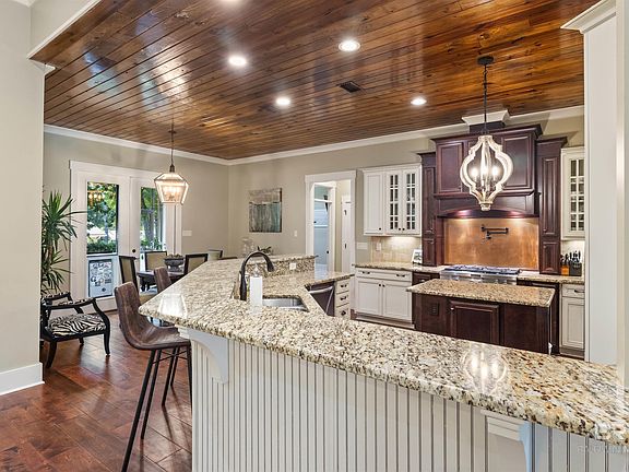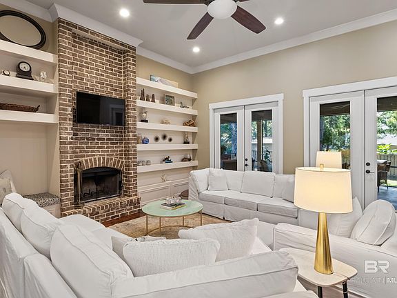 Welcome to Fairhope! Discover your dream home in this custom-built 4-bedroom, 3½-bath residence, ideally located in a charming neighborhood just a short stroll from the Fairhope Yacht Club, Fairhope Recreation Center, and Fly Creek Marina. Impeccably designed for southern living, this home offers a harmonious blend of elegance, comfort, and functionality, making it perfect for entertaining and enjoyment. As you enter, you’ll be captivated by the soaring 12 ft ceilings and beautiful hardwood flooring that create an inviting atmosphere throughout. The spacious open-concept kitchen is a chef’s delight, featuring a premium Kitchen Aid appliance suite complete with a 6-burner gas stove, a whisper-quiet dishwasher, a Delta tap faucet, built-in double ovens, a microwave, a built-in ice maker, and a Samsung refrigerator. The main floor includes a luxurious master suite along with two additional bedrooms, an office with built-in desks, and a dedicated laundry room. The expansive master bath is a true retreat, boasting separate vanities, a spa-like walk-in shower, and a generous walk-in closet with custom shelving. Upstairs, you’ll find nearly 400 sq ft of private space in the 4th bedroom suite, which features a 7’ kitchenette, a living area, a built-in desk, and a bath with a walk-in shower—ideal for an in-law suite, or flexible living space. For outdoor entertaining, step through one of three sets of French doors to over 750 sq ft of screened porch that includes a wood-burning fireplace and a fully equipped outdoor kitchen—truly an entertainer's paradise. The oversized three-car garage offers built-in cabinets and shelves for optimal organization, while the Gold Fortified construction provides peace of mind with hurricane screens, hurricane-rated windows on the second level, and a whole-house generator. Embrace the best of Fairhope living in this exquisite home designed for comfort and style. Buyer to verify all information during due diligence.