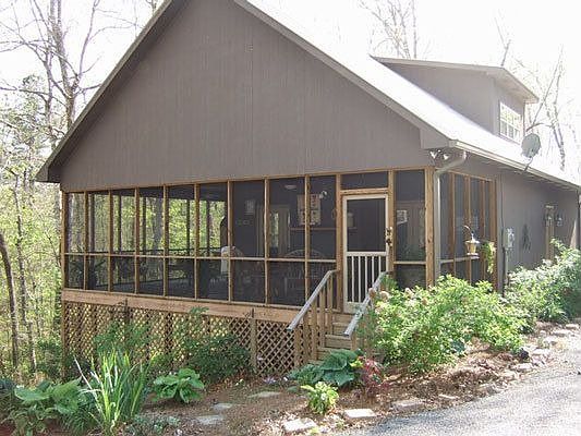 Enjoy the Good Life! You'll get that warm and cozy feeling as soon as you enter the drive of this 3-year old cabin situated in the cul-de-sac at Laurel Creek. Come in to discover 2 bedrooms, 2 baths, comfortable living/dining area with cathedral ceiling, rock fireplace, kitchen with island and all appliances. Inside and out, there's room to entertain with over 600' of screened porches and access to 3 lakes and common areas along with several walking trails. Single car carport with storage.