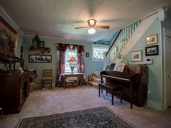 Room for everyone in this charming 1 1/2 story home. From entering off the covered front porch, you will marvel at the archways and woodwork. Large rooms, including custom woods kitchen. The two staircases invoke memories of another time. Vintage details and thoughtful planning throughout the home. Outdoors, the gardens make this a delight.