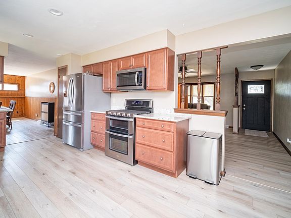 Beautifully large updated 2-bedroom, 2-bath home in the Winnebago School District, offering approximately 1,500 sq ft on the main floor plus a basement ready to be finished for additional living space. The spacious owner’s suite features practical closet shelving and a recently completed ensuite with dual vanities. At the heart of the home, the eat-in kitchen has been completely redesigned into a cook’s dream with abundant cabinetry, modern finishes, and all appliances included. The kitchen opens into a versatile dining or family room, providing flexible space for everyday living. Just beyond, the wonderful 3-seasons porch brings in natural light and serves as a seamless extension of the living areas—perfect for entertaining, morning coffee, or simply unwinding at the end of the day. Additional conveniences include a washer and dryer that stay with the home, a fenced-in backyard for privacy, and a new front door that adds fresh curb appeal. Other highlights are refreshed flooring throughout, a drywalled 450 sq ft garage, recent mechanical updates such as a new water heater, AC, and air purifier, plus features like an Aprilaire whole-home humidifier and water softener for year-round comfort. A retro-inspired hallway bath adds character but can easily be updated to suit your style. Close to schools, shopping, and more, this home combines charm, functionality, and peace of mind—all in one move-in ready package!