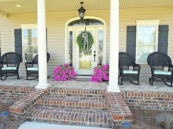 Price reduced! Looking for a home w/all the bells & whistlers! Rocking chair front porch. 3br, 3ba home on large lot, hardwoods throughout. Walk into the beautiful foyer w/columns that separate formal dining, coffered ceilings. Family room has beautiful fireplace, cathedral ceilings, opens to a large covered back porch for relaxing and grilling. kitchen offers lots of counter and cabinet space. granite, columns separate kitchen from family room. Breakfast has bay window over looking large back yard. Master has tray ceiling with mood lighting, Lots of windows, custom master bath with ceramic tile, granite tops, double vanities, oversized master closet. Bedroom 2 has its own full bath, walk-in in closet, 3rd bedroom & bath off hall. Large back yard, mins to I40 and I95. Great schools. Agent is related to seller.