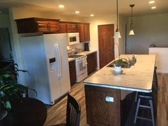 This immaculate two story - three bedroom - three bathroom duplex is located in the Village of Fall River, WI (only 20 minutes from Madison). AVAILABLE NOVEMBER 1st! First floor includes access to the attached 2-car garage, large family / rec room, one bedroom, one full bathroom, laundry room with extra storage space. Second floor has a luxury open concept kitchen / great room, large master bedroom with spacious walk-in closet and private master bathroom with double vanity, one bedroom, one full bathroom, dining area with access to private deck in the back. Kitchen and bathrooms have beautiful Amish hand-made, soft-close cabinetry. Landlord provides lawn care and snow removal services. No smoking allowed.