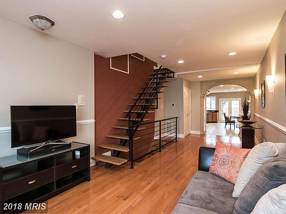 Stylish renovation just steps to Patterson Park! This home features an open floor plan-kitchen w/granite counters and stainless appliances. French doors open to a tranquil shaded patio. Hardwood floors throughout the house. The second floor has two bedrooms each w/private bath, master bath w/jetted tub and balcony overlooking rear yard.Large basement w/tons of storage space.