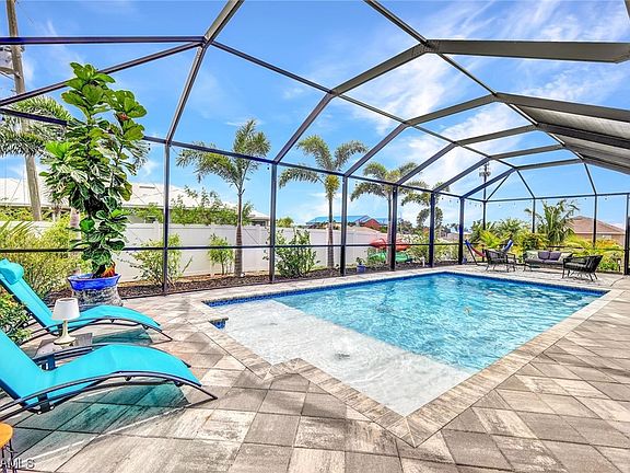 Welcome home!! This 3 year old home is ready to make your own. Enjoy the private outdoor oasis that features a heated saltwater pool with a great view of the canal to enjoy our amazing Southwest Florida sunsets. You can sit on your private dock, fish, drop in your kayak and enjoy the wildlife. Your new home boasts plenty of space and is great for entertaining with the zero-corner pocket sliding door, adding value and an open indoor/outdoor living space. You'll love the kitchen with quartz counter tops, new appliances, plenty of counter space and loads of cabinets/storage. The sellers even upgraded the roof from shingle to a modern, eco-friendly metal roof. You'll love the custom landscaping that surrounds this home with thousands of dollars’ worth of palm trees and exotic plants to showcase your home. You won't have any traffic by your home, since your home is the last one on the street and dead ends at the canal. All this, and conveniently located to everything! Shopping, dining, Veterans bridge to Fort Myers, and everything Cape Coral has to offer as one of the fastest growing cities in the US! This is a home you don't want to miss!