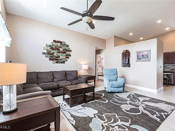 The home boasts distinctive diagonal tile work and laminate bedroom flooring. a truly cohesive and artistic touch. Both bathrooms feature unique vanities, quality fixtures, and artistic mirrors, giving each space a boutique feel. The master suite is private and serene, while the additional bedrooms are perfect for family, guests, or a home office. Enjoy the upstepped laundry area in the garage, complete with a wash tub, shelving, and automatic opener—a practical and convenient space close to the main living area. Out back, unwind on the screened lanai overlooking a newly fenced backyard with a pleasant, peaceful view, perfect for relaxing or entertaining. All this in an ideal location just north of Veterans Parkway, within walking distance to schools, shopping, and all the best the area has to offer. Don’t miss this opportunity to own a unique, meticulously maintained home in one of SW Florida’s most desirable neighborhoods!