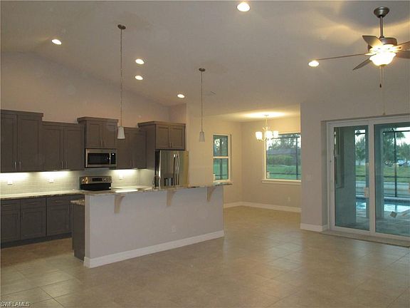 You're going to LOVE this brand new construction pool home! This 3 bedroom + den home sits on a freshwater canal with beautiful Southern views. Features include 3 car garage, painted wood cabinets with granite through out, large walk in pantry, coffee bar, breakfast area, huge walk in shower in master with double vanity and separate tub. The master bedroom has a very large walk in closet that everyone will appreciate. Like to entertain? The enormous "party room" sits off to the side of the pool with spectacular views. Other features include: impact windows/doors, tons of closets/storage, concrete dock, extra insulation for soundproofing, paver drive and pool deck, sprinkler system and upgraded landscaping and it's not in a flood zone!