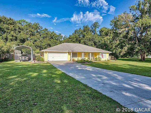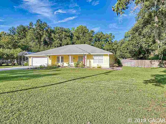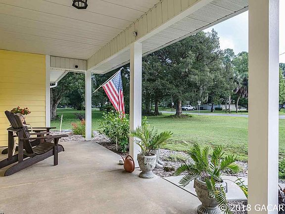 Like new! This 3/2 + office is just minutes from downtown Newberry. Fully updated eat-in kitchen features SS Frigidaire appliances, freshly painted wood cabinets, new faucet & sink, pantry, and granite counter tops. Breakfast nook overlooks spacious backyard. Split floor plan with beautiful hickory plank flooring in living areas and tile in wet areas. Granite & new faucets in both baths. Large master has dual vanities, linen closet, recently tiled walk-in shower, garden tub, & walk-in closet. Thermal pane windows, six panel interior doors, hunter ceiling fans in every room & french doors leading to back patio. Covered back patio is perfect for entertaining. Enjoy low maintenance salt water pool (resurfaced 2018). Backyard is fully fenced with 10x20 storage shed. Extended carport is perfect for RV or boat. Two car garage w/ epoxy flooring.