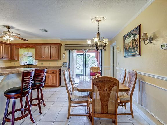 OMG STOP! You have just found the home that you have been looking for! This prefect three bedroom, two bath, oversized two garage home is located in the most ideal location in Cape Coral. Just south of Pine Island Road off Nicholas Parkway, you will live within blocks of the best shopping, dining and entertainment the Cape has to offer. Walmart, Kohl's, Ace Hardware, Dollar Tree, Sams Club, Publix and more! There are more than 20 eateries within a mile including the Wicked Dolphin Rum Distillery. If you like action and adventure you'll enjoy Around the Clock Fitness, Mike Greenwell's Family Fun Park, Sun Splash Family Water Park, Lake Kennedy Community Park and the Strausser BMX Sports Complex. All of this convenience is matched by the exceptional features this home offers. The open living/dining room is the perfect layout and with high ceilings, the rooms feel spacious and inviting. NO CARPET! Tile floors in the living area and kitchen while the bedrooms have laminate wood. Step out back onto the large screened lanai and enjoy a fenced backyard with mature mango fruit trees. The oversized garage is stocked with storage cabinets. This home will not last long so don't miss out!