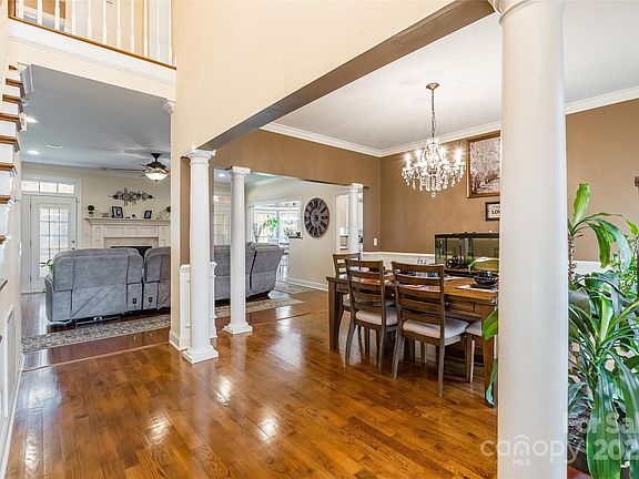 Nestled on 1.35 acres, this gorgeous 5 bedroom home offers incredible curb appeal with a covered front rocking chair porch. Inside, you'll find stunning wood floors throughout the main living areas, elegant columns, a cozy fireplace in the great room, and wainscoting. Two sets of double doors lead to the deck, bringing in tons of natural light, and transom windows above the French doors add a touch of elegance. The spacious primary bedroom is located on the main level and includes an ensuite bathroom. A half bath is also conveniently on the main floor. The main level also features a gorgeous sunroom. Upstairs, the remaining bedrooms provide ample space. The landscaped backyard is equipped with an inground irrigation system, and a large shed for added storage. Recent updates include a new HVAC system on the upper level (2024) and a new well. This home offers a perfect blend of spacious living and outdoor enjoyment. Don’t miss the opportunity to make this stunning property your own!