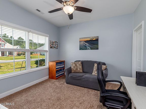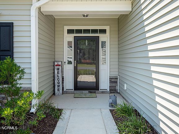 Welcome to the beautiful neighborhood of The Preserve at Tidewater. This home checks all the boxes and is ready for new owners now. Upon entry, you will notice a carpeted flex room on your left, which opens and closes with a barn-style door, along with a half-bath. As you proceed, you will immediately notice the spacious living and kitchen area, which encompasses hardwood flooring, crown molding, fireplace, and an open-concept floorplan. The kitchen comes equipped with stainless-steel appliances, granite countertops, lovely backsplash, gorgeous cabinetry, and separate island. Upstairs, you will find all 4 bedrooms and 2 full bathrooms. The master bedroom has trey ceilings and contains and ensuite, with a separate shower, tub, and walk-in closet. The backyard is an oasis! As you open the back door, you will step out into a covered and screened-in porch. When you leave the porch, you will step onto the concrete patio and you will notice one of the best features of this backyard paradise...the hot tub!! Finally, the backyard has a 6-foot privacy fence and there is a solar shower hooked up on the side of the house, perfect for rinsing off after arriving home from a day at NORTH TOPSAIL BEACH or the COMMUNITY POOL. Enjoy the perks of a small town with no city taxes, while also being just a short 30-minute commute to bigger shopping & restaurants in Wilmington & Jacksonville. Stone Bay, MCAS New River & Camp Lejeune back gate to Courthouse Bay are all within minutes.