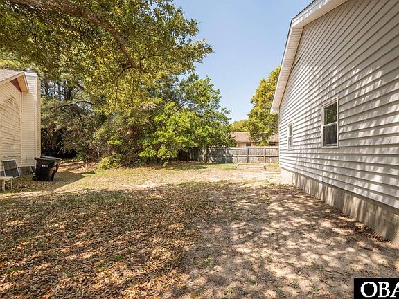 Charming Home in First Flight Village – within walking distance of beach, grocery and hardware stores. Perfectly situated on a quiet cul-de-sac. Move in Ready! Open-concept living, dining, and kitchen area. This residence boasts laminate and tile flooring for easy maintenance. Upgrades including 2014 PVC plumbing replaced with modern Pex plumbing, 2012 replaced roof and 2025 new sliding glass door set to enhance the transition to your outdoor space. Step outside to relax on the 10x10 deck off the dining room, which overlooks a large yard with a small storage shed for your outdoor tools and toys. Updates in 2023 include a new water heater, a new heat pump, new garage door with opener, attic staircase and door, R19 insulation over the garage, and HVAC flex ducts in the attic and a new fan with thermostat in the attic ensures proper ventilation year-round. The full attic provides ample additional storage space The garage includes a workbench and offers direct access to the home, enhancing convenience and security. Vacant and easy to show