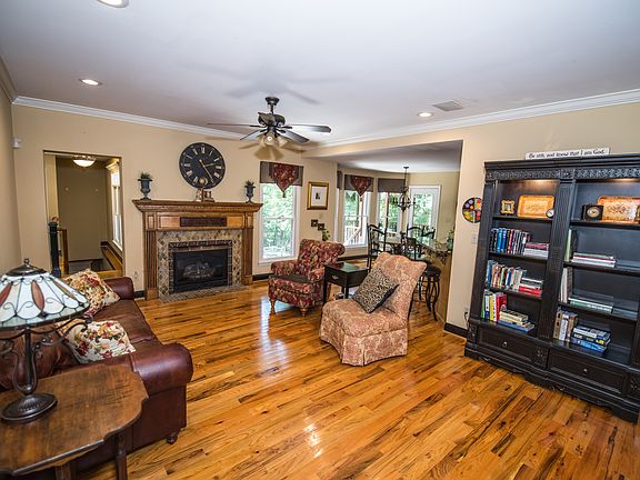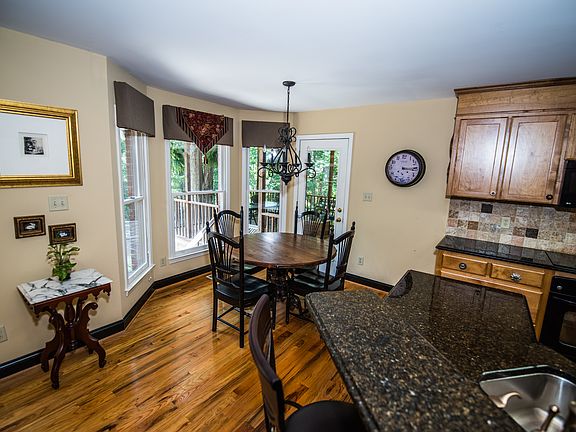 Spacious wooded, private cul-de-sac lot with sodded yard, concrete drive with large 2 car garage and 2 extra parking spaces in front. Large covered rear deck with brick flooring overlooks wooded / sodded fenced in yard with a large patio and rock walkway. Nice view of Lake in the winter a plus! Main level has hardwood flooring and an updated spacious kitchen area with new cabinets and granite counter tops and fixtures. Large master bedroom has French doors that lead to covered deck. Master bath has jacuzzi tub and a large ceramic tile shower, spacious walk-in closet. Guest bedroom is large with a full bath and a view of wooded lot. Large laundry / craft room with built in cabinets and large utility sink. Downstairs has beautiful stained concrete flooring with a new (1 year old) rock remote controlled gas fireplace and a full surround sound theater sound system .French doors lead to rock walkway and fenced in back yard.