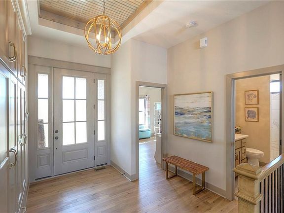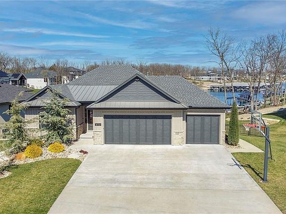 Enjoy luxury lake living in this custom 5 bed 4 bath ranch-styled home! The main floor has an open concept feel to include a walk-in pantry, large great room, pocket office and eating area, oversized island with double sliding doors to the covered deck. Master bedroom with a fantastic view of the lake, oversized master bathroom with large walk-in closet to include the laundry room. Down stairs boasts a massive 828 sq ft suspended garage floor which is currently set up for anyone looking to become the next American Ninja Warrior (see pictures)! This space has a pass through to the side of the house with large double doors allowing for easy access coming and going from the dock/lake. There are 3 full bedrooms, 2 full bathrooms, laundry room, wet bar area and full great room with large double sliding door. Step out onto the stamped covered patio to include an oversized hot tub, firepit, metal fenced yeard, beautiful landscaping and concrete path to the dock. Dock includes a boat lift and small lift for jetskiis or kayaks/canoes. This home will be a short distance to the new amenities addition that is planned to include a large pool, community building and more! (SOLD BEFORE PROCESSED!)