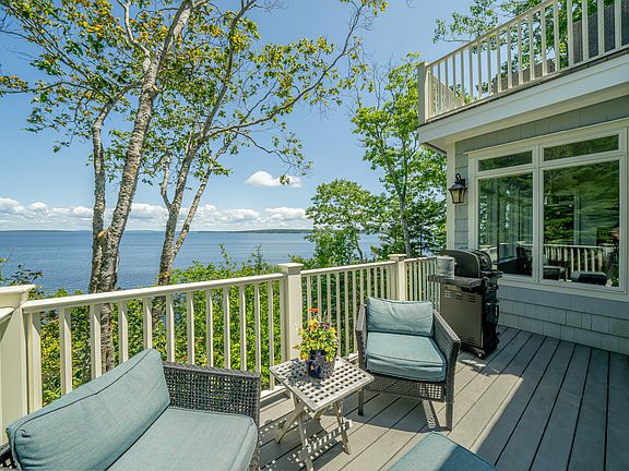 Two absolutely superb, 4-season oceanfront cottages on an exquisitely landscaped lot with endless views of Penobscot Bay make this a magical offering! Completely rebuilt in 2019 in a casually elegant style, ''Nestled Inn'' offers a sunlit great room with a cathedral ceiling and walls of windows that frame the amazing ocean views, 2-bedrooms, including an en suite primary bedroom with a library/sitting room and spa bathroom and a first-floor bedroom and additional bath. An architectural show-stopper with its whimsical ''gingerbread'' trim and cupola, ''Eagle's Perch'' was totally renovated and expanded in 2014 and it, too, offers expansive ocean views from nearly every room, a primary en suite bedroom with a den and a private water-view balcony and a 1st-floor guest room and full bath. Both cottages feature spacious wraparound decks for outdoor entertaining, mini-split heat pumps for energy efficient heating and cooling and many other amenities for comfortable year-round or summertime living. Close to historic Bayside Village with its deepwater dock, yacht club, playground and golf course and convenient to Belfast, Lincolnville Beach and Camden, this splendid property is a highly desirable vacation rental and can be viewed with advance notice. Please call for a showing schedule.