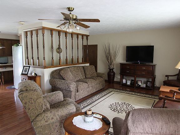 Small Town Living at its finest. This is a must see a shows pride of ownership. Open floor plan that has been updated with wood floors throughout the living room, dining room and kitchen, new carpet. Master Bedroom has a separate bath with shower. Other features include Anderson windows, large family room in the lower level, two non-conforming bedrooms and additional storage area.