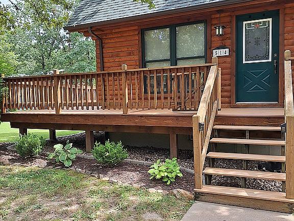 Stunning Log Home in Spring Bluff School District. Nestled on a sprawling 6.18 acre lot, near Long Ridge Conservation Area, this 4 bedroom, 3 bath, 2 car garage home offers opportunities galore. Before entering the home, you will notice the beautiful wrap around deck, rustic fire pit, and top of the line pool, all perfectly located for easy entertaining. Once inside the home you will be amazed at the living/dining room open floor plan with its vaulted ceilings and beautiful atrium windows (new log sofa and chair included). Off the living area is the kitchen which includes all the best, soft close cabinets, granite counter tops, and stainless steel appliances. The huge master bedroom with private bathroom is located upstairs just past the loft. The finished basement has plenty of natural light, ample storage, and a laundry nook just off the hallway. This home can be as green as you would like with its outdoor wood furnace. Once done touring the home you will need to spend plenty of time viewing the detached oversized 3 bay garage with its own bathroom and thermostat. This is perfect for all those toys or just a great hang out. This will not last long. Schedule a showing today.