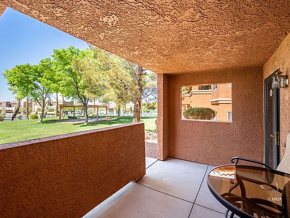 Adorable ground floor condo at The Falls Hillside Villas. This condo sits so perfectly to enjoy southern views of the lush park right in front of the condo with Mesquite Valley in the distance. Perfect orientation on the front patio to sit and enjoy the Southern Views. This condo was remodeled in 2015, and everything was replaced at that time; the flooring, cabinets and countertops, paint and appliances. This home is a little gem and shows beautifully.
